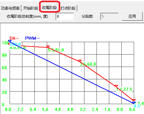 圖2 激光功率緩升緩降效果